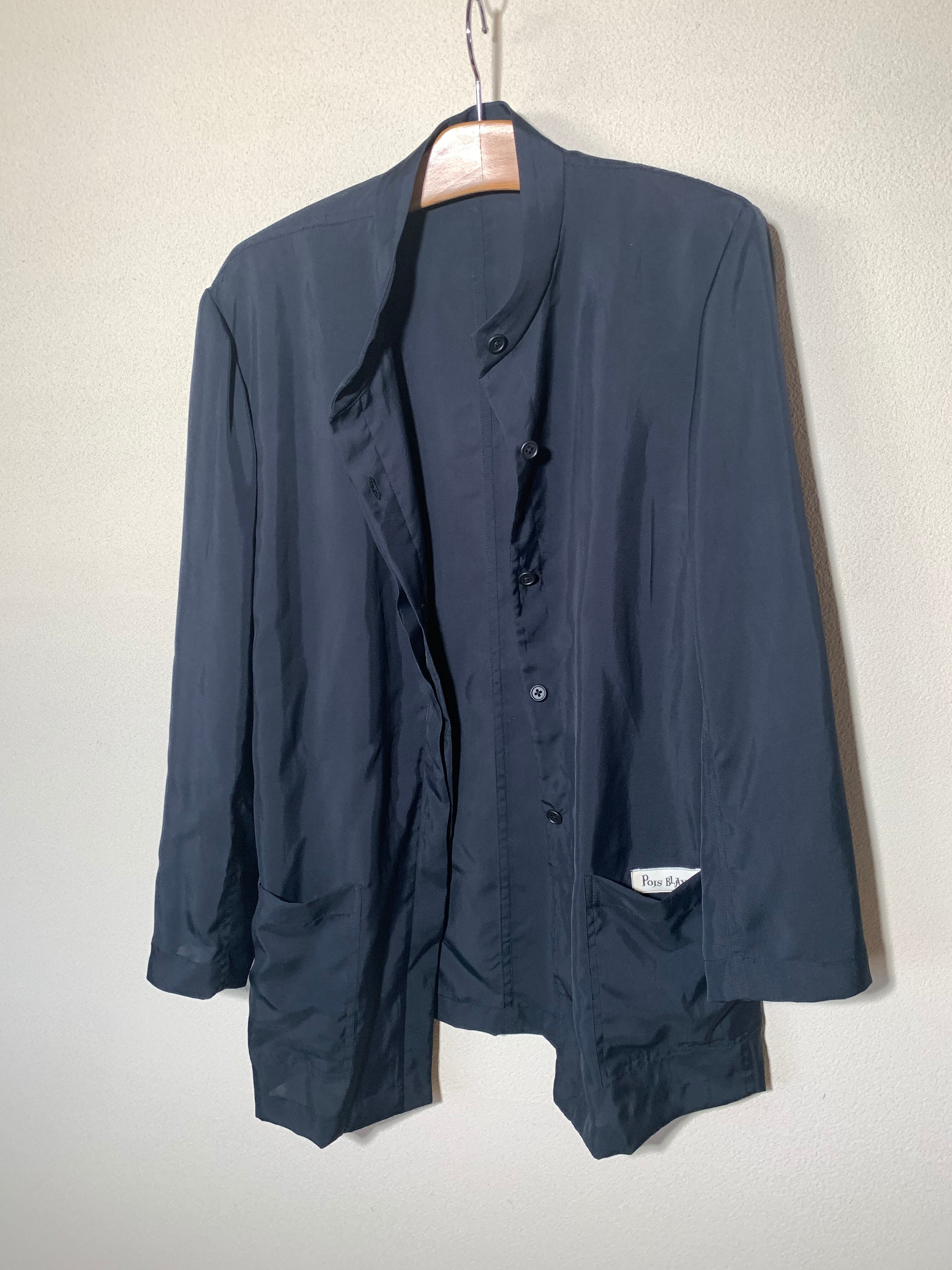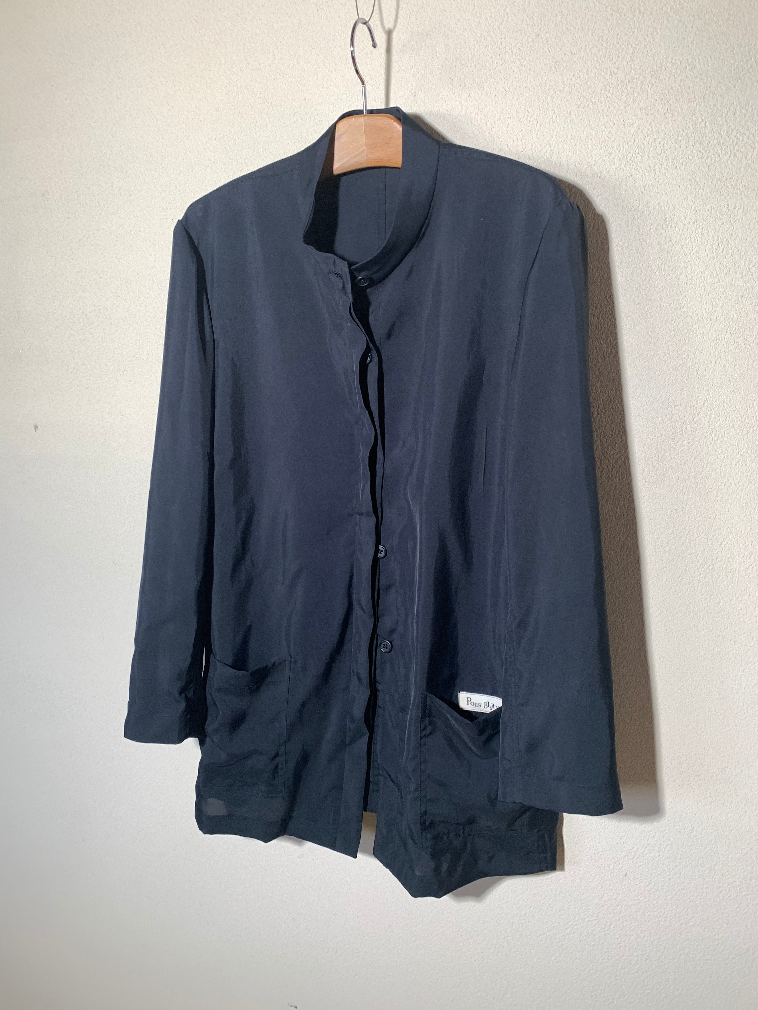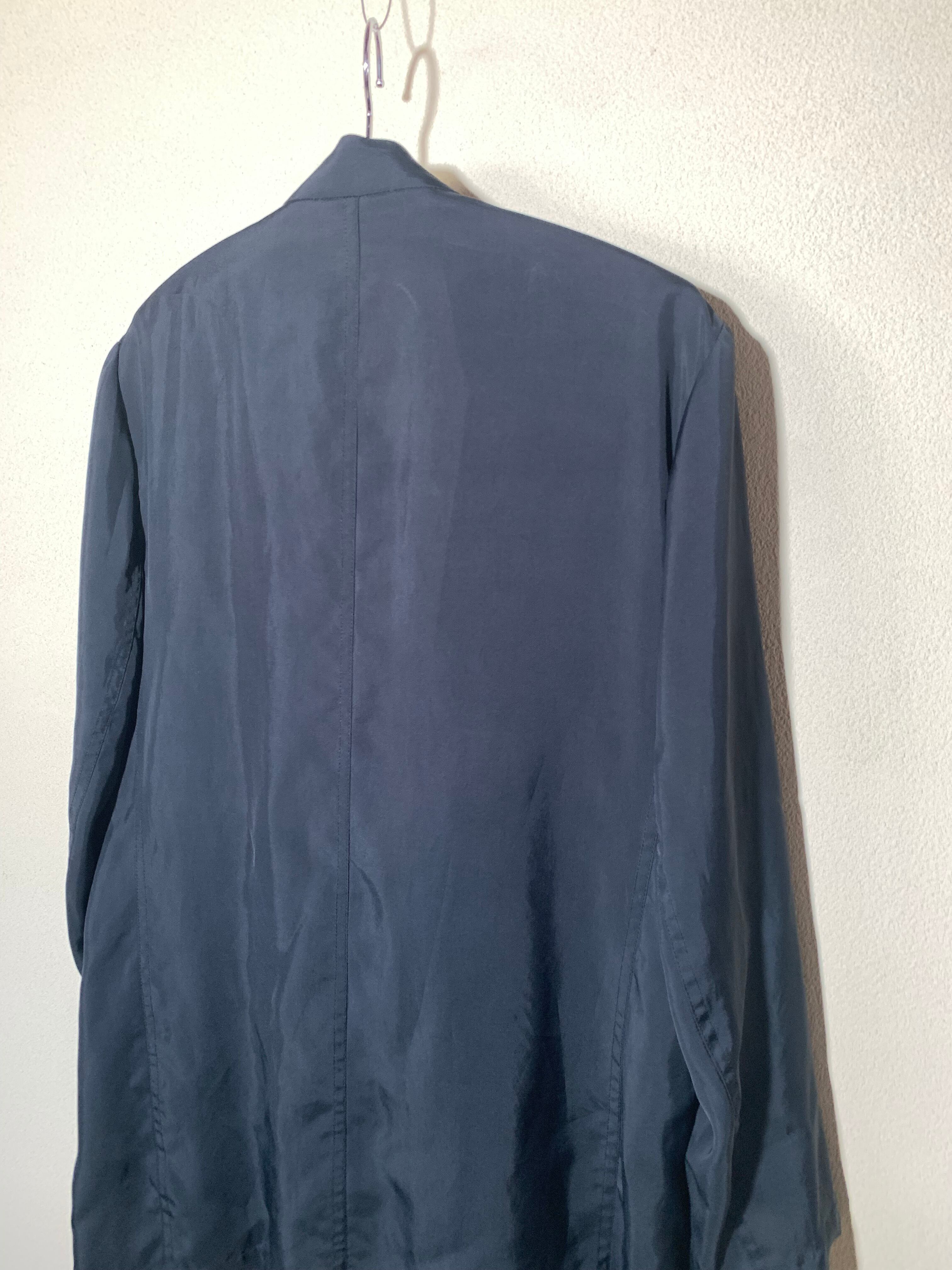 透け感のある薄手ポリエステル素材で、オールシーズン着用できるジャケットです。