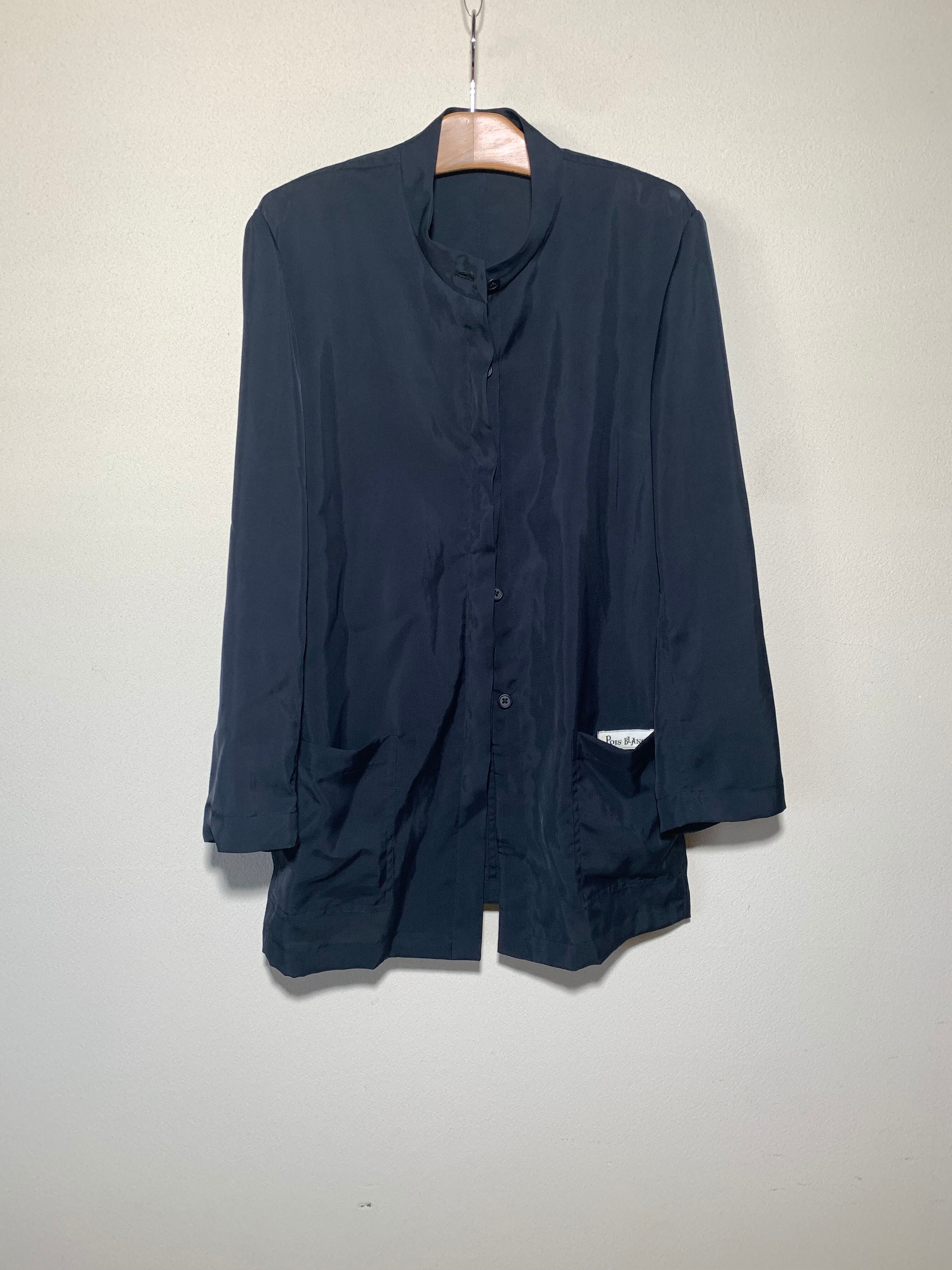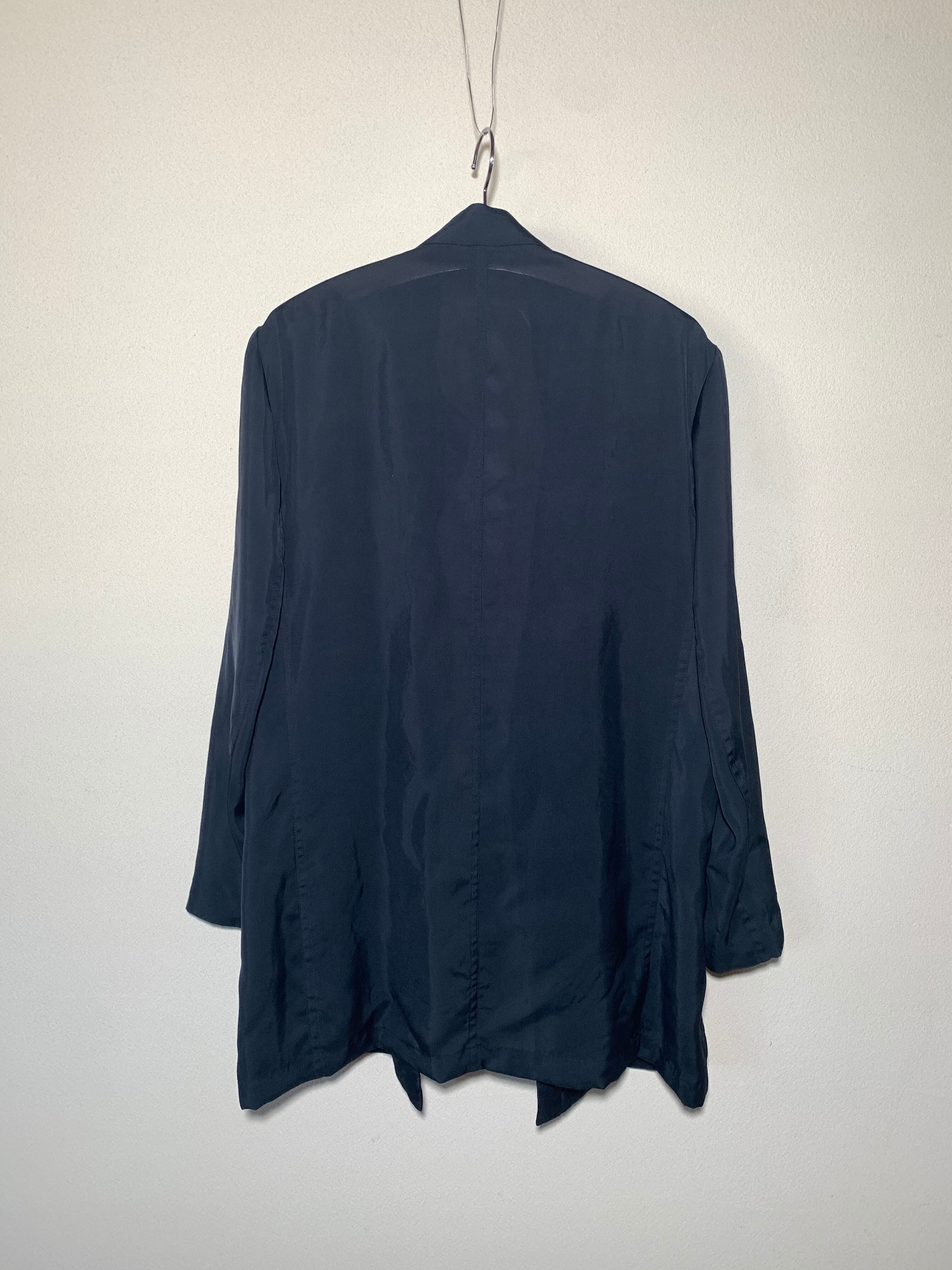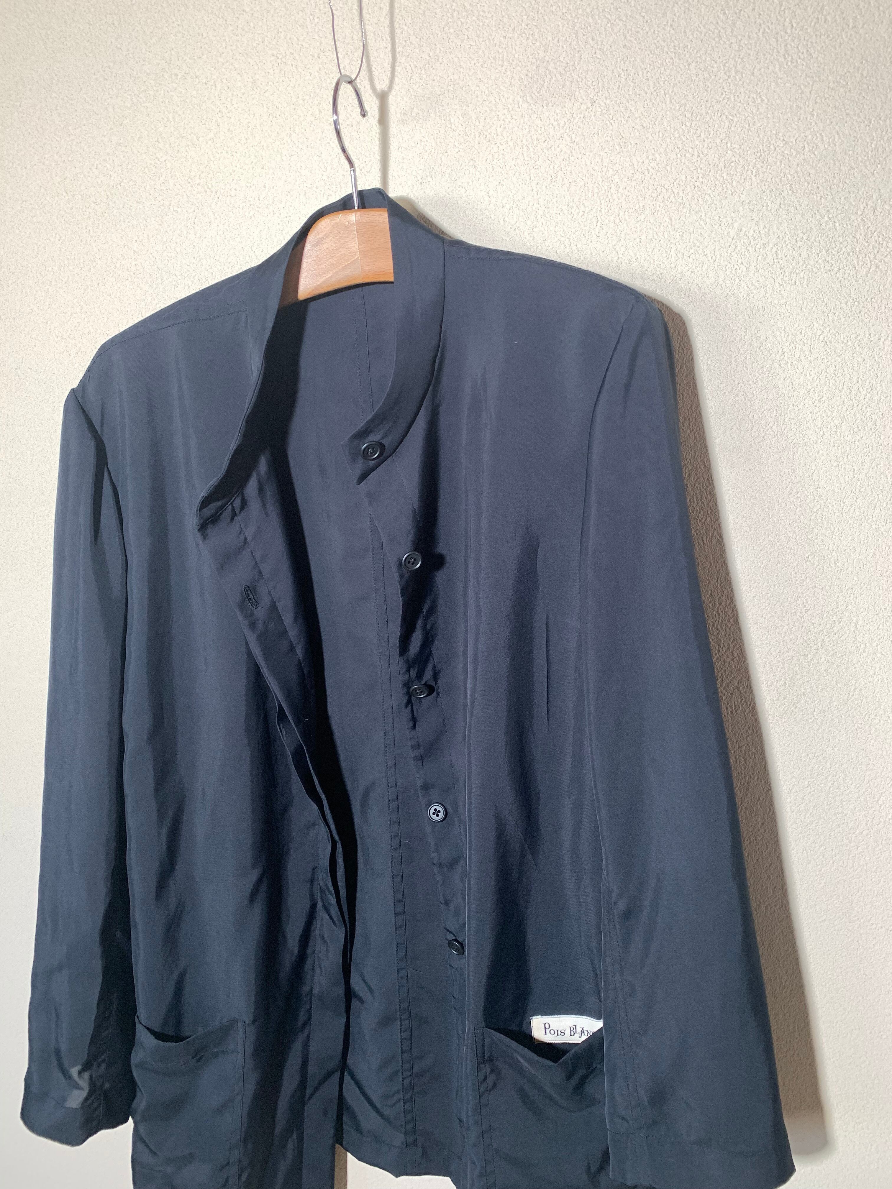 透け感のある薄手ポリエステル素材で、オールシーズン着用できるジャケットです。