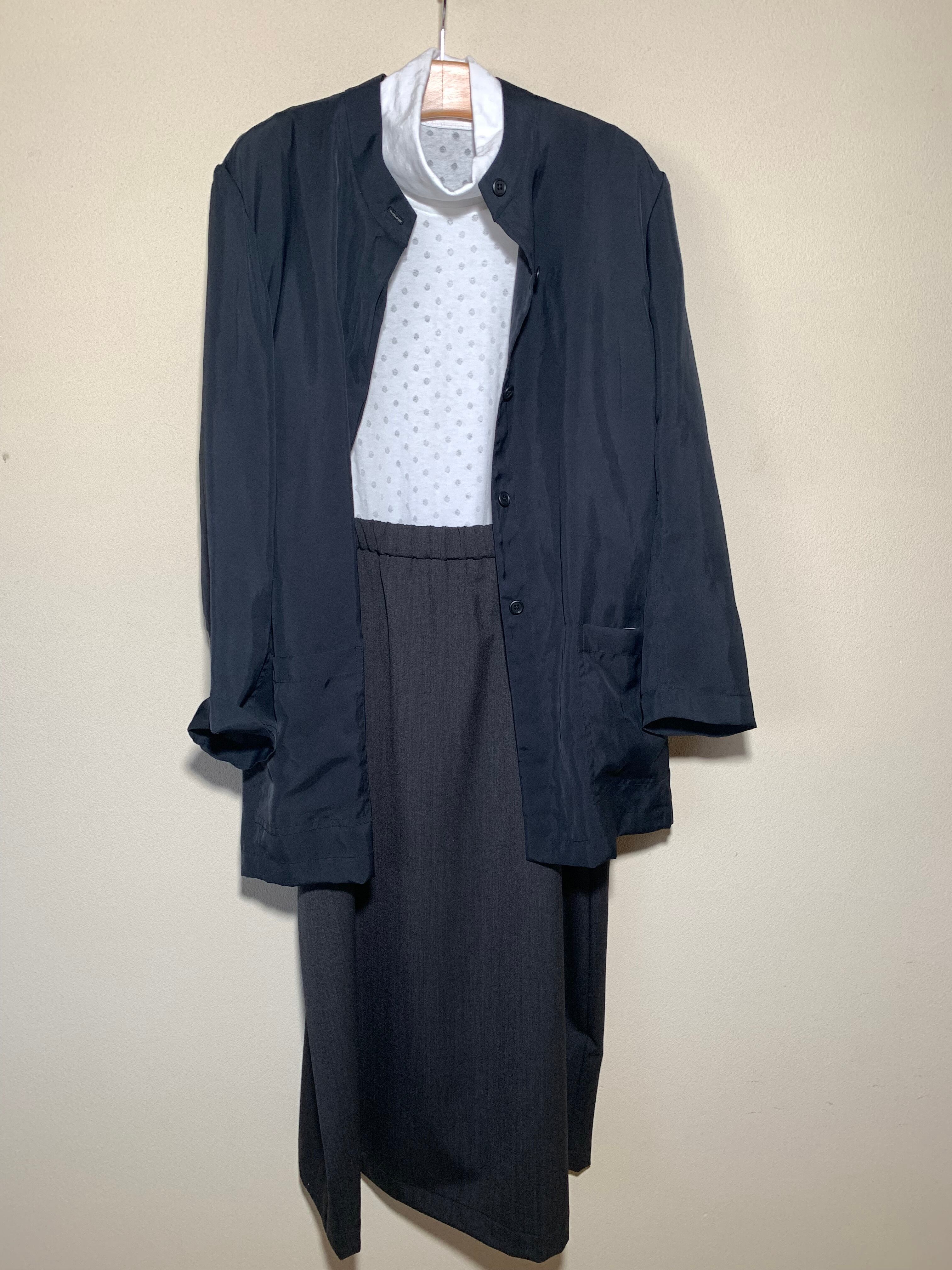 前は本比翼仕立てで、ボタンが外側に出ないのでシンプルさが際立ちます。