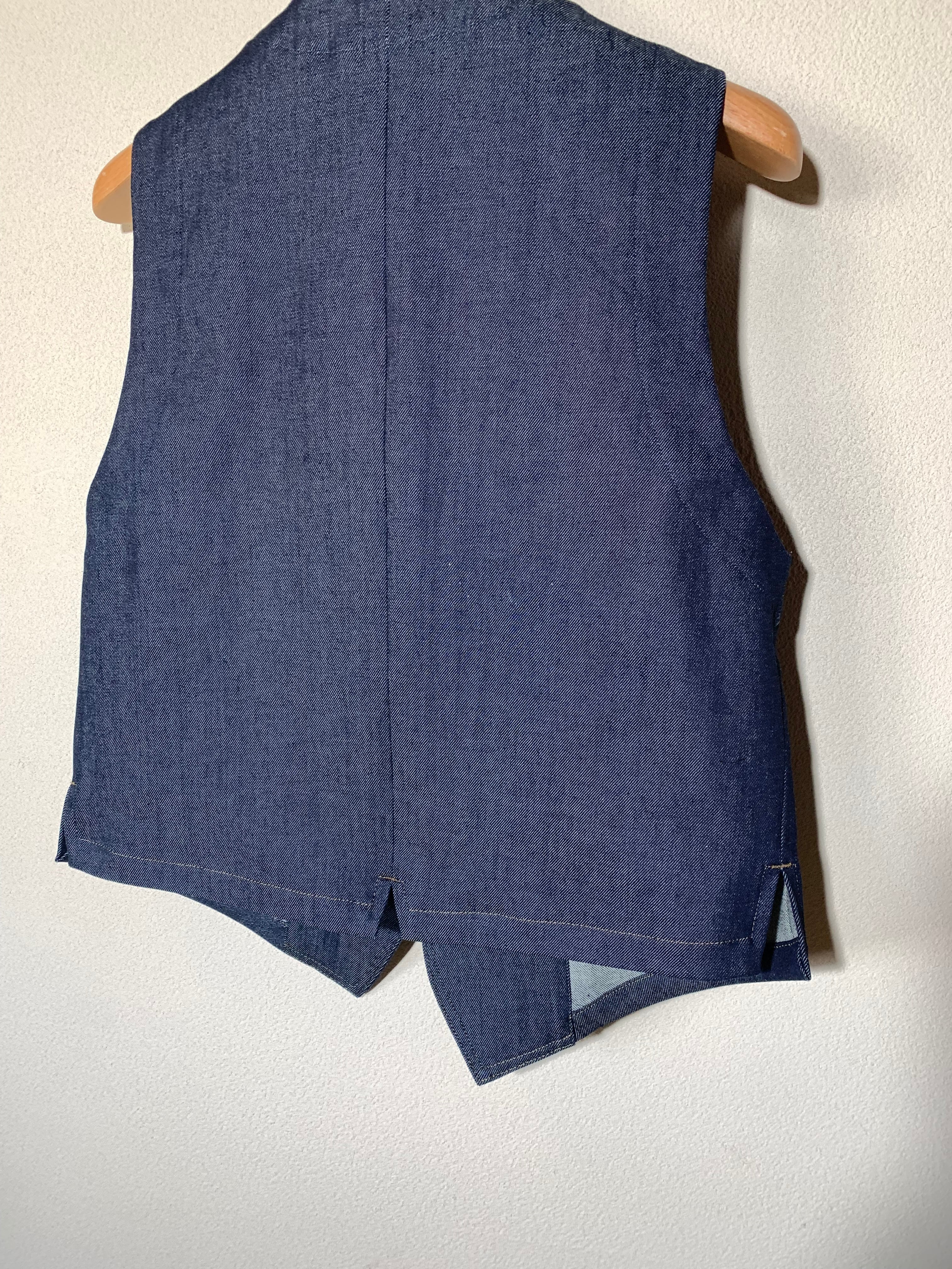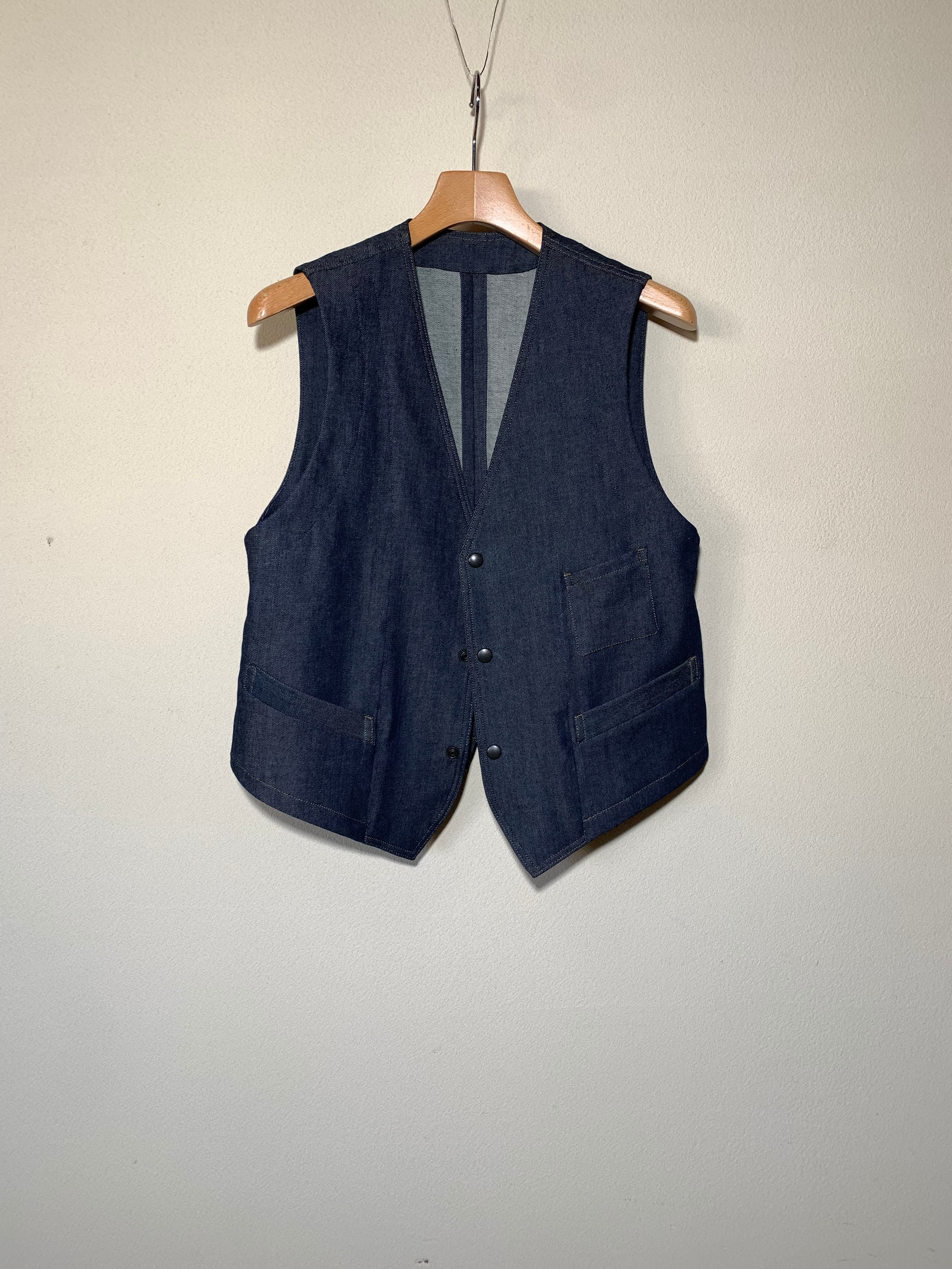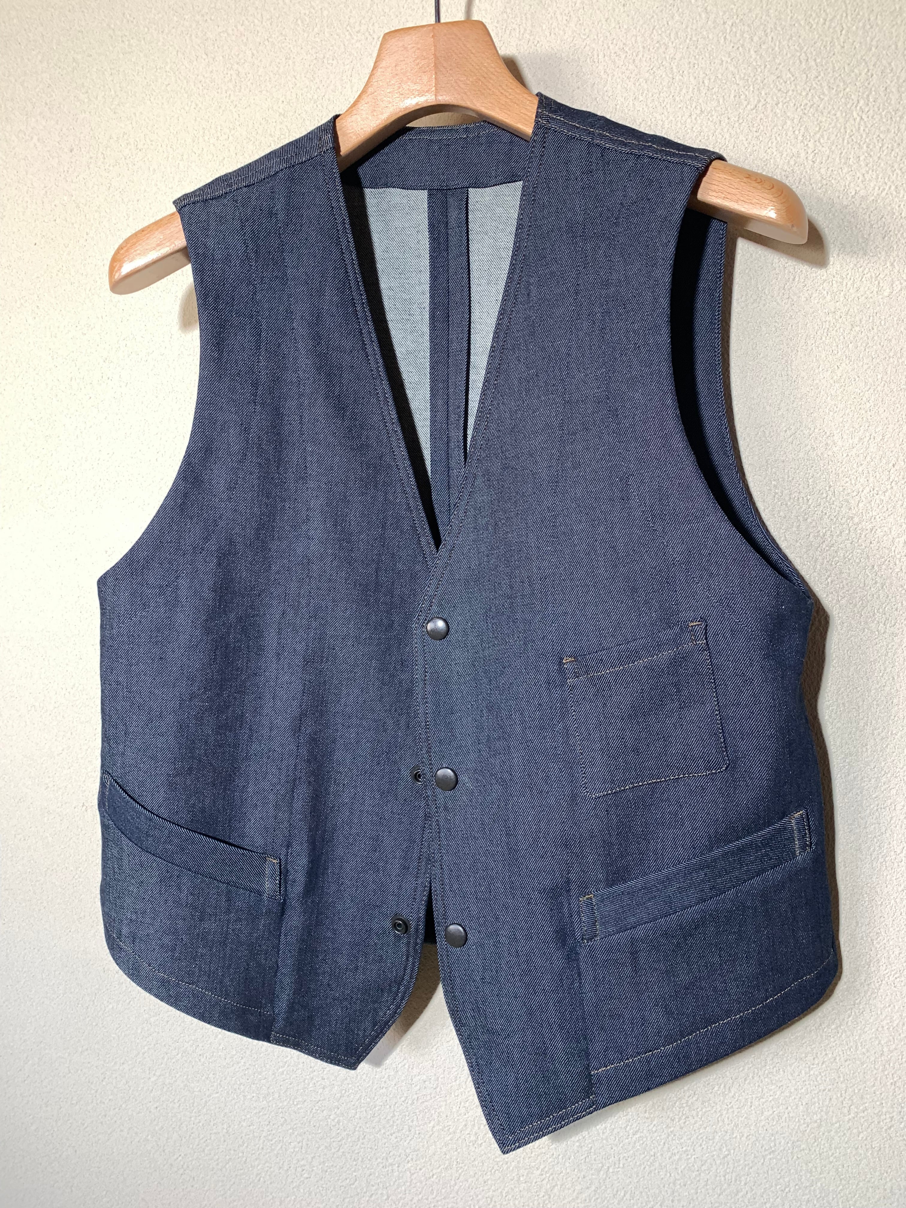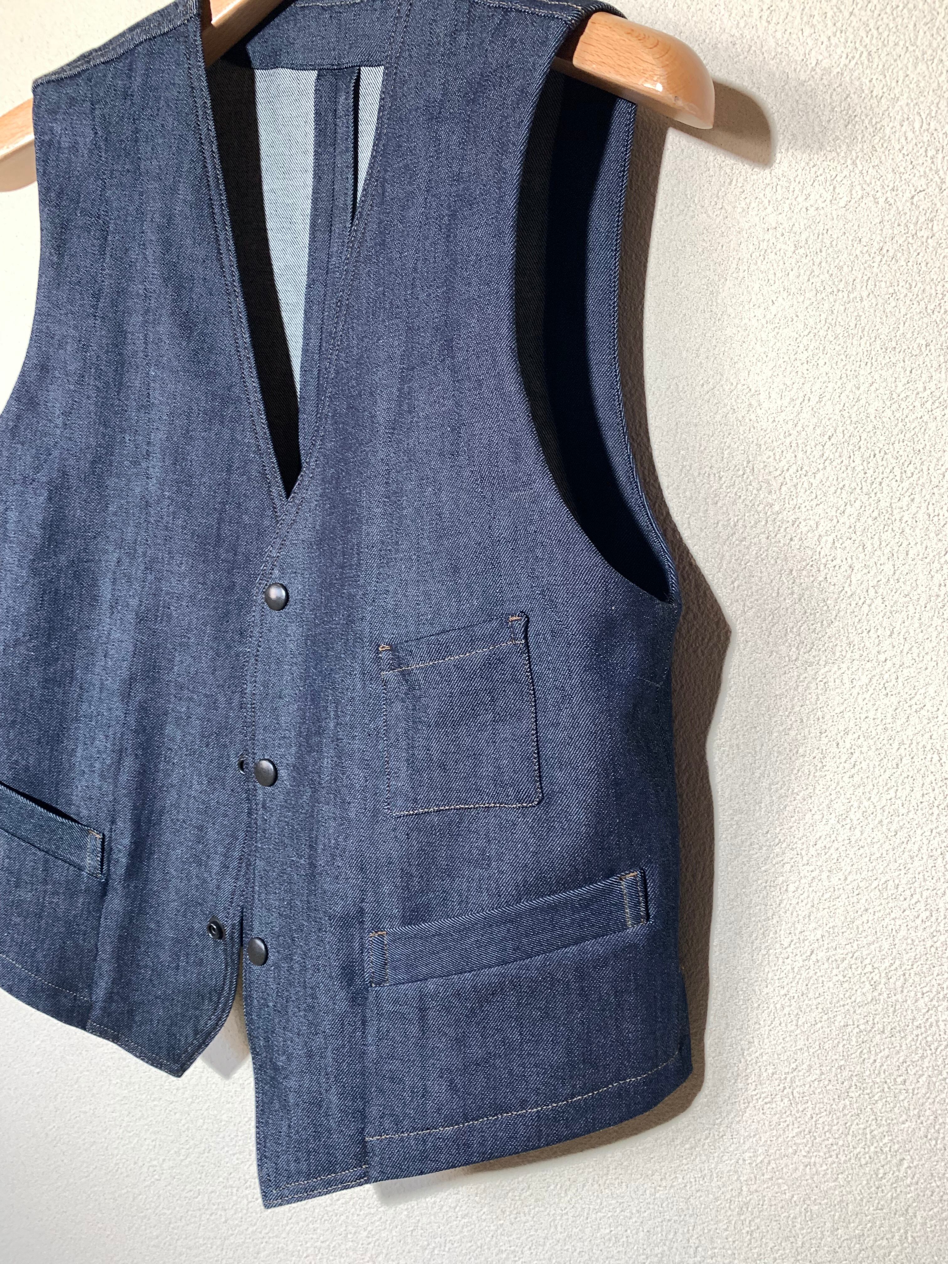 濃紺、中肉厚の綿デニム素材でカチッとした仕上がりです。