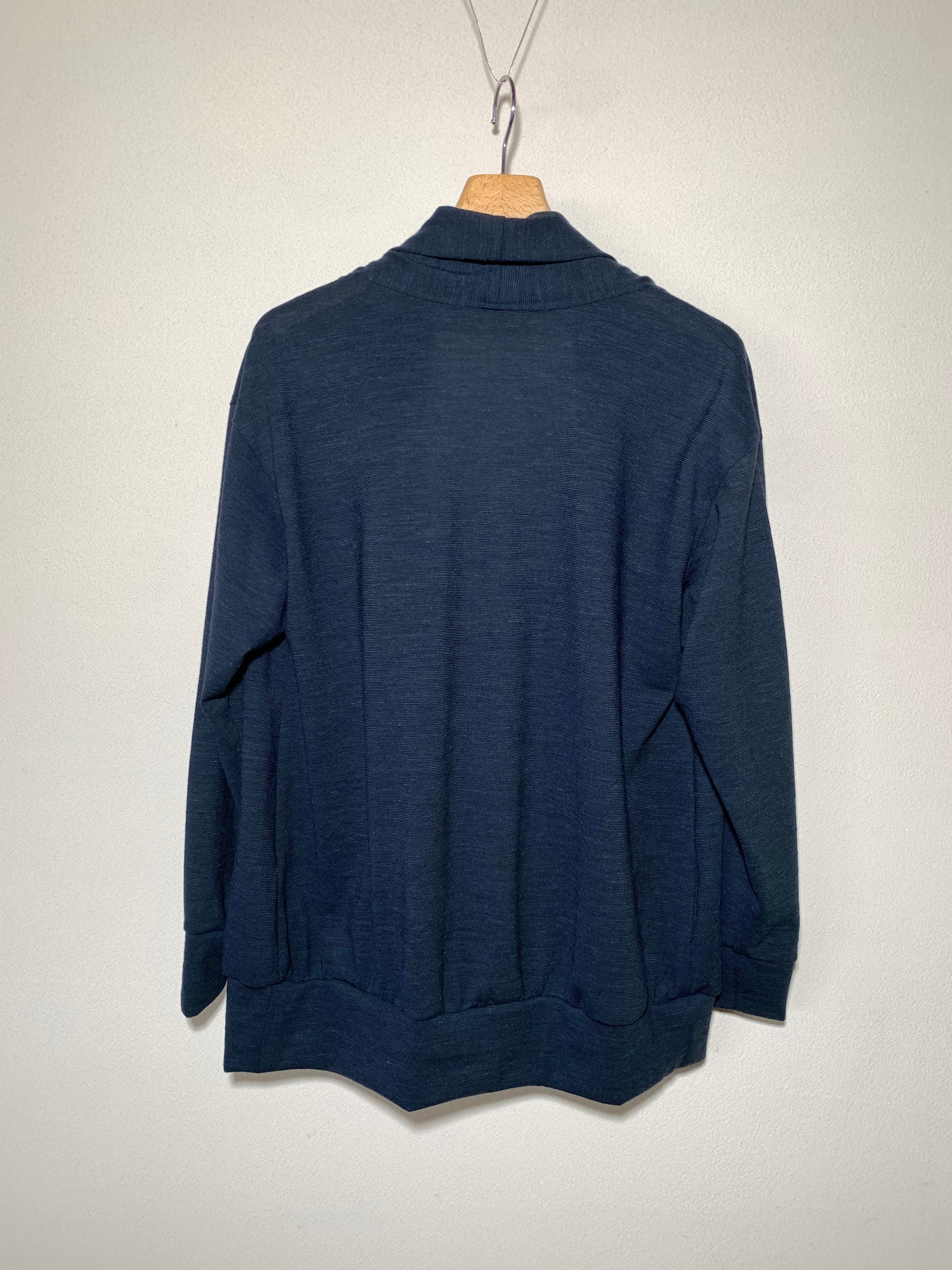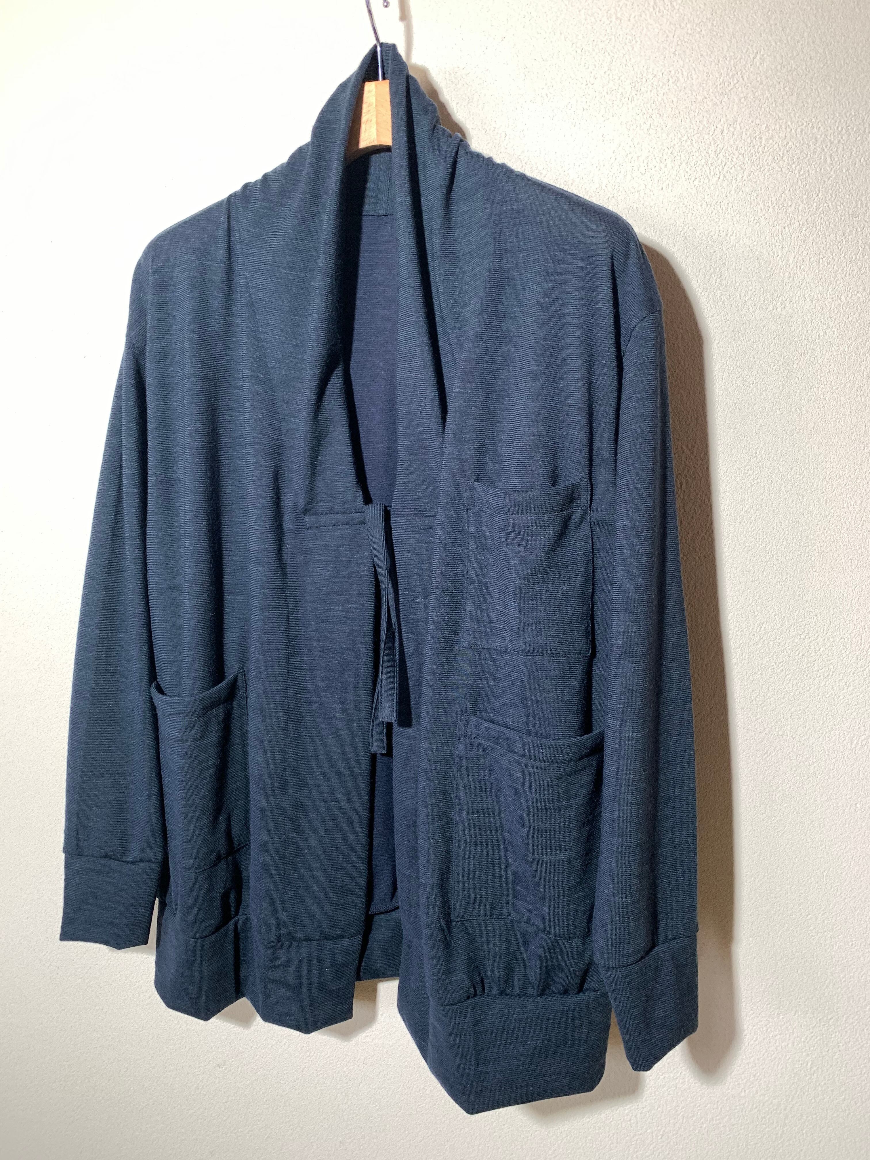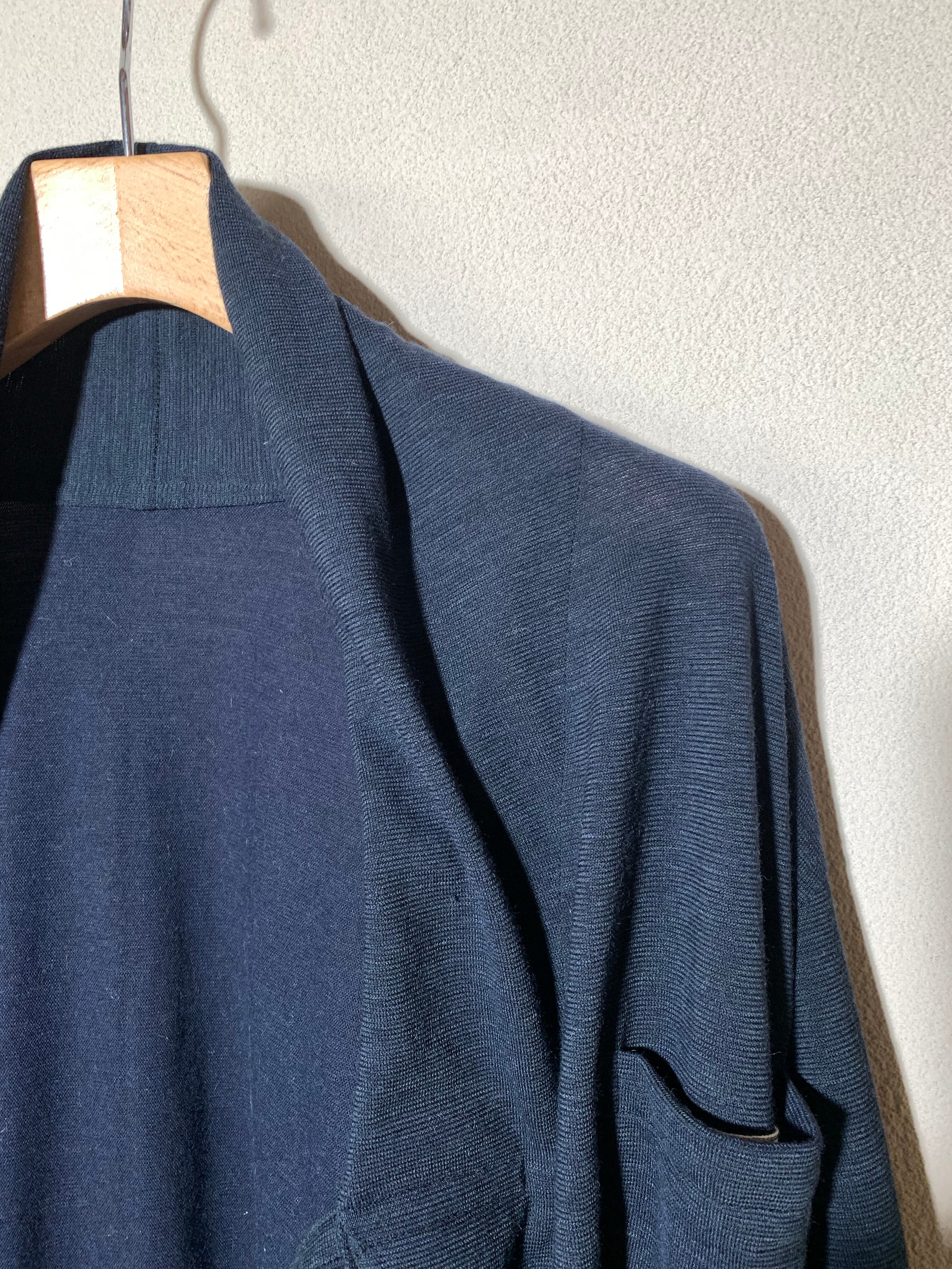 黒(墨黒)に近い濃紺のニットを使用したカーディガンです。